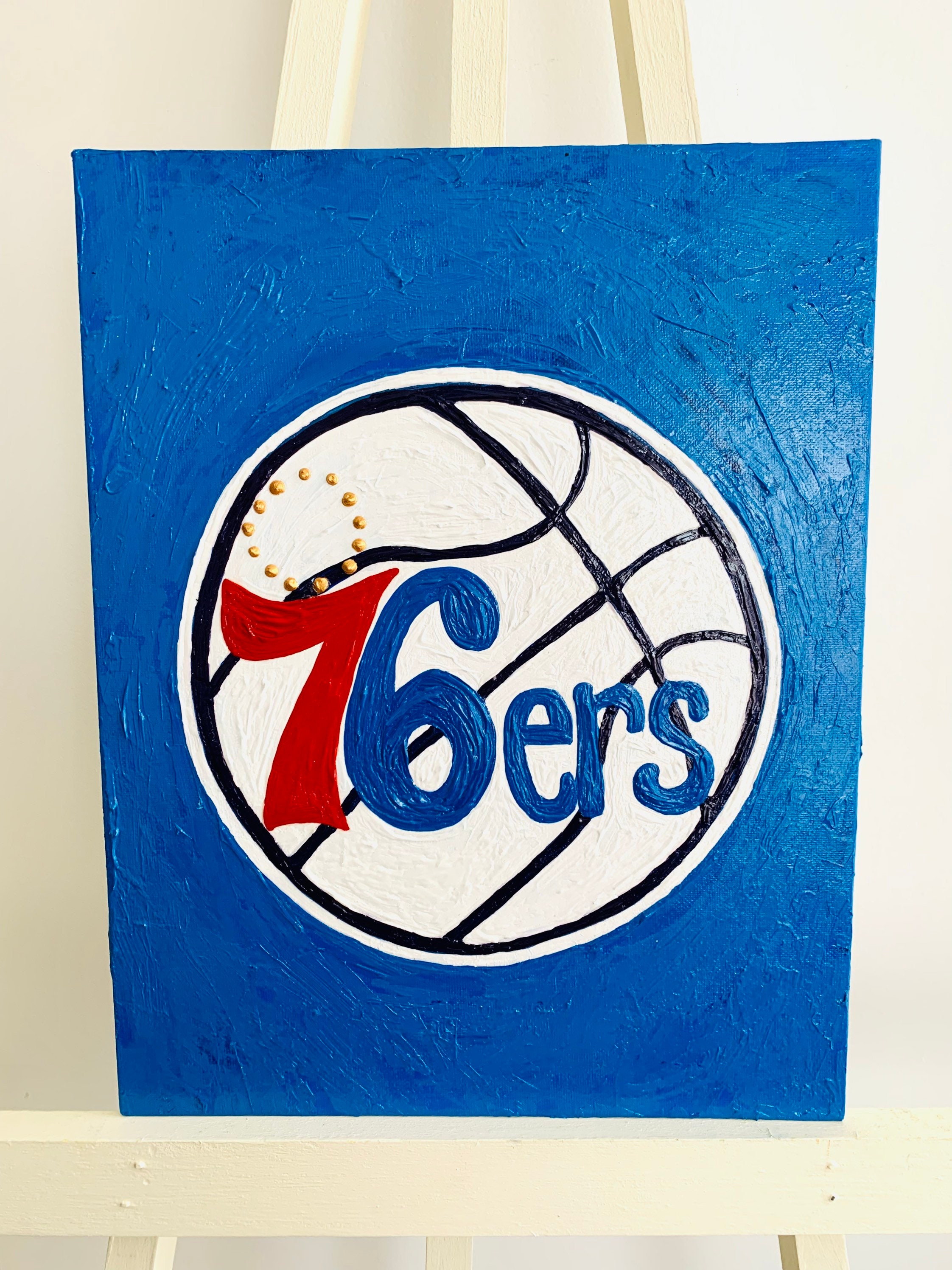 14x11 76ers Logo Painting Philadelphia Sixers On Flat Canvas Etsy Uk
